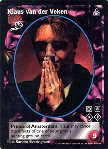 © Le jeu Vampire the Eternal Struggle ainsi que les illustrations de cartes trouvées sur ce site sont la propriété de White Wolt.
